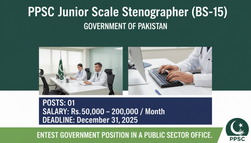 The Public Relations Office under the Government of Pakistan is seeking applications for the post of Junior Scale Stenographer (BS-15). This entry-level position is ideal for candidates looking to start a career in the public sector administration.