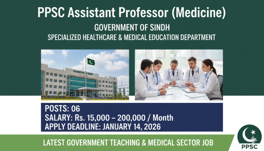 The Government of Sindh, through the Department of Specialized Healthcare & Medical Education, invites applications for the position of Assistant Professor (Medicine). This is an excellent opportunity for experienced medical professionals looking to contribute to academic excellence and healthcare education in the province.